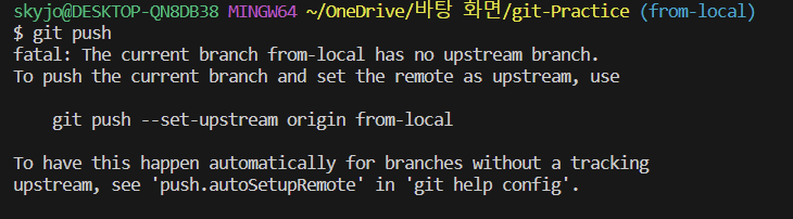 해당 의미는 컴퓨터가 from-local 브랜치를 어디에 push해야할지 모르겠다는 의미이다.