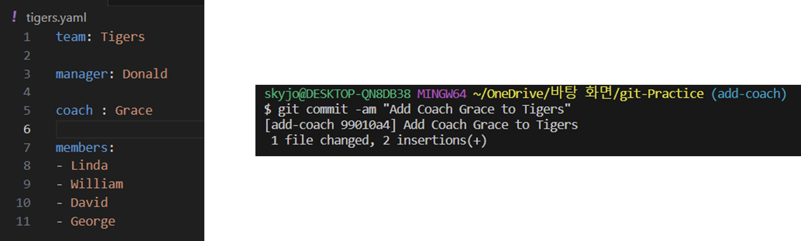 - Tigers의 매니저 정보 아래 coach: Grace 추가