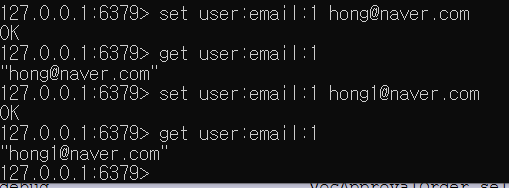 set user:email:1 hong1@naver.com- Key: user:email:1