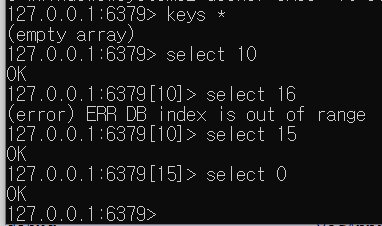 select 10 # 10번 DB로 전환 select 9 # 9번 DB로 전환